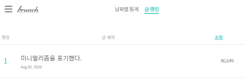 하지만 '미니멀리즘을 포기했다'라는 이름으로 바꾼 후 바로 메인에 노출이 되었다.