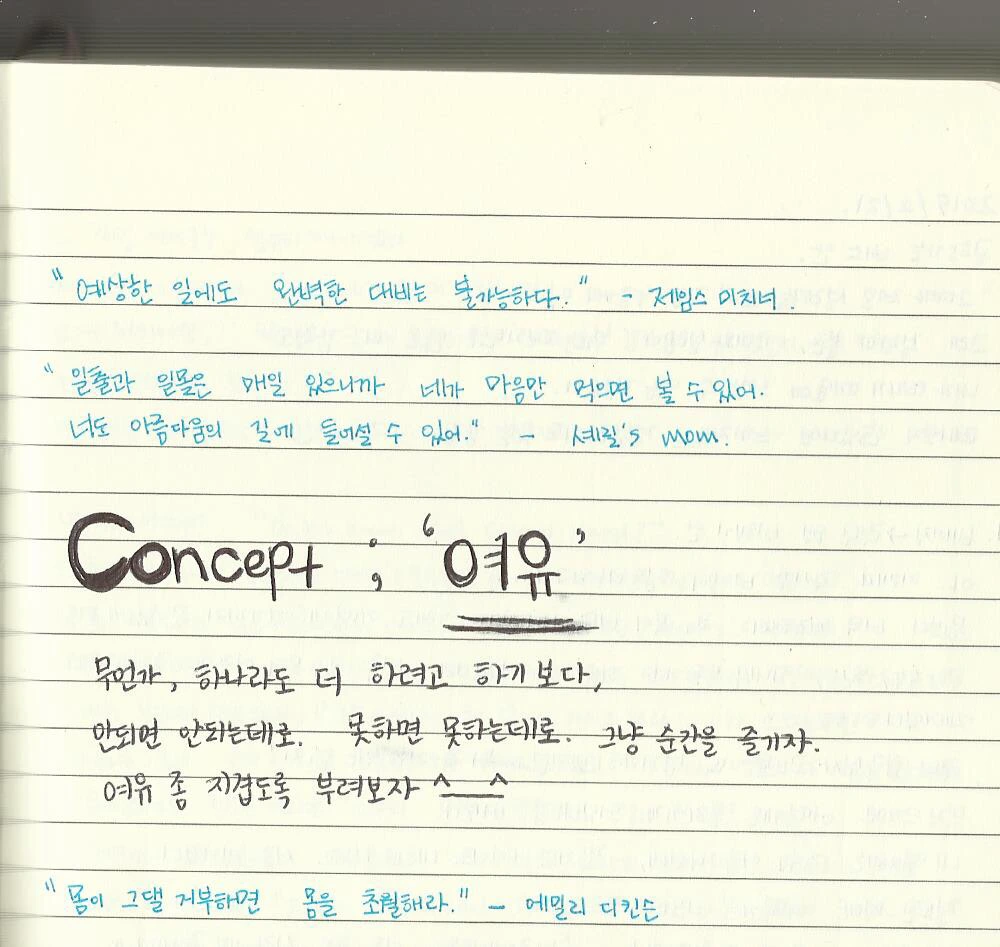 매일 다이어리를 적을 때 마다 보고 또 보며 때로 마음을 다 잡기도 하고, 때로는 명언에 큰 공감을 하기도 했다.