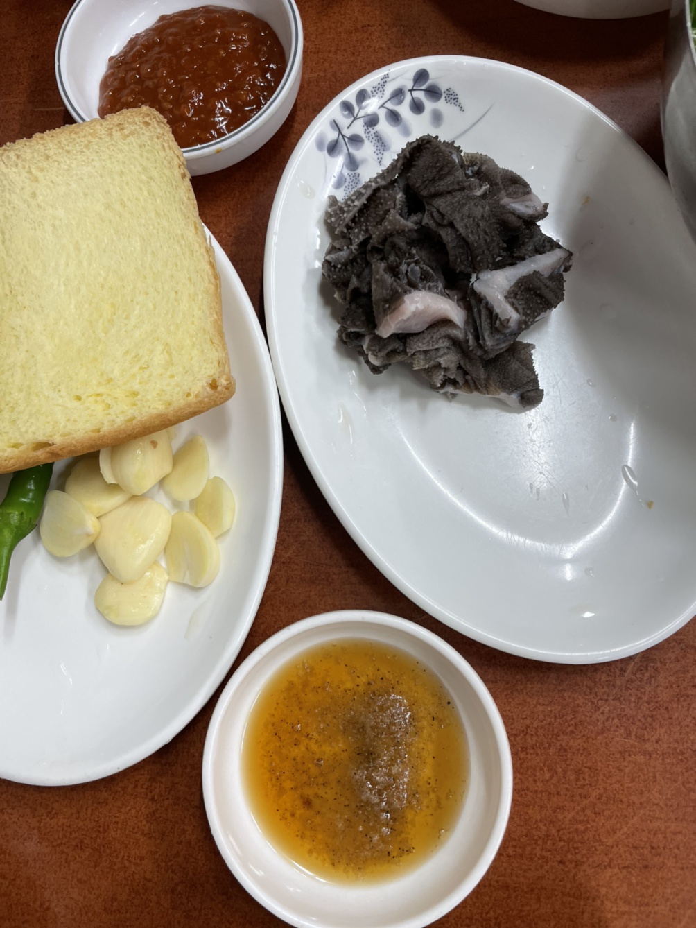 가장 빨리 익는 염통부위는 지금 먹으라며 양념장에 찍어서 바로 내주셨다.