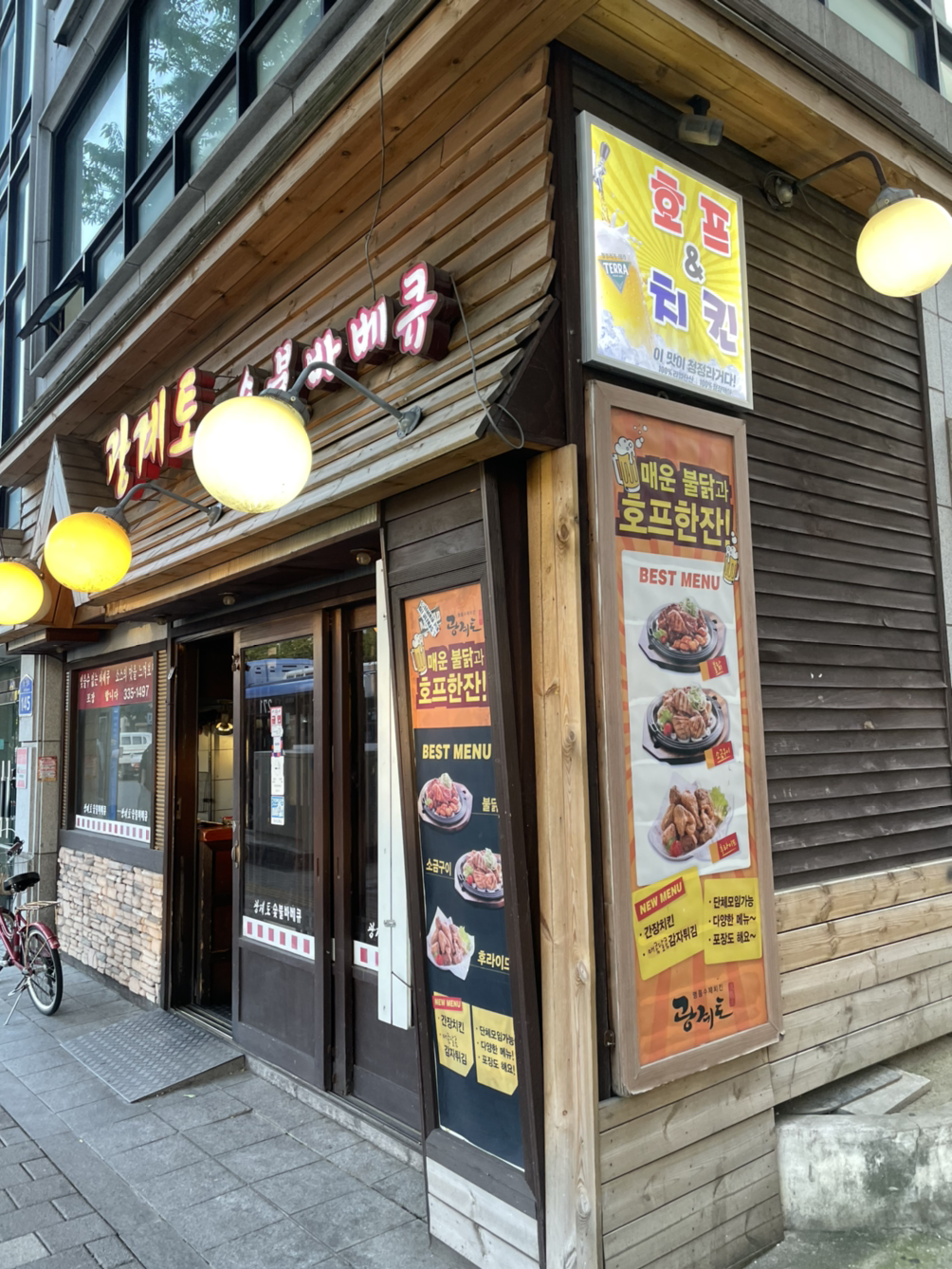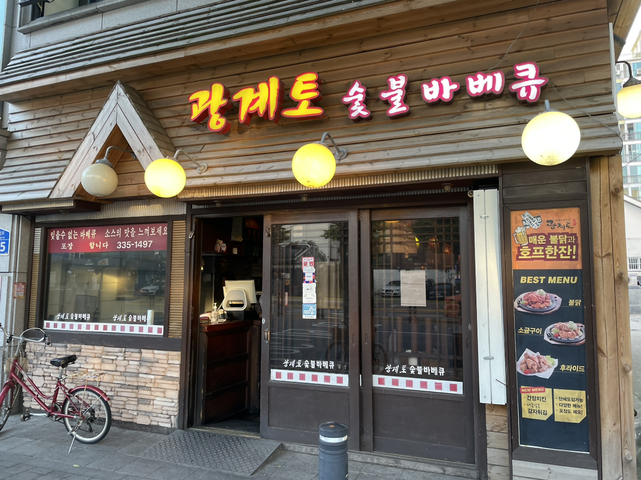 자전거로 10분 내외 거리에 있는 숯불바베큐 집을 찾아냈다.