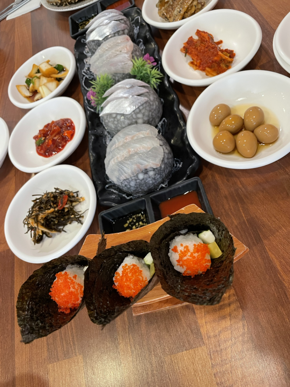 게장, 갈치조림, 갈치회, 갈치구이, 소라구이