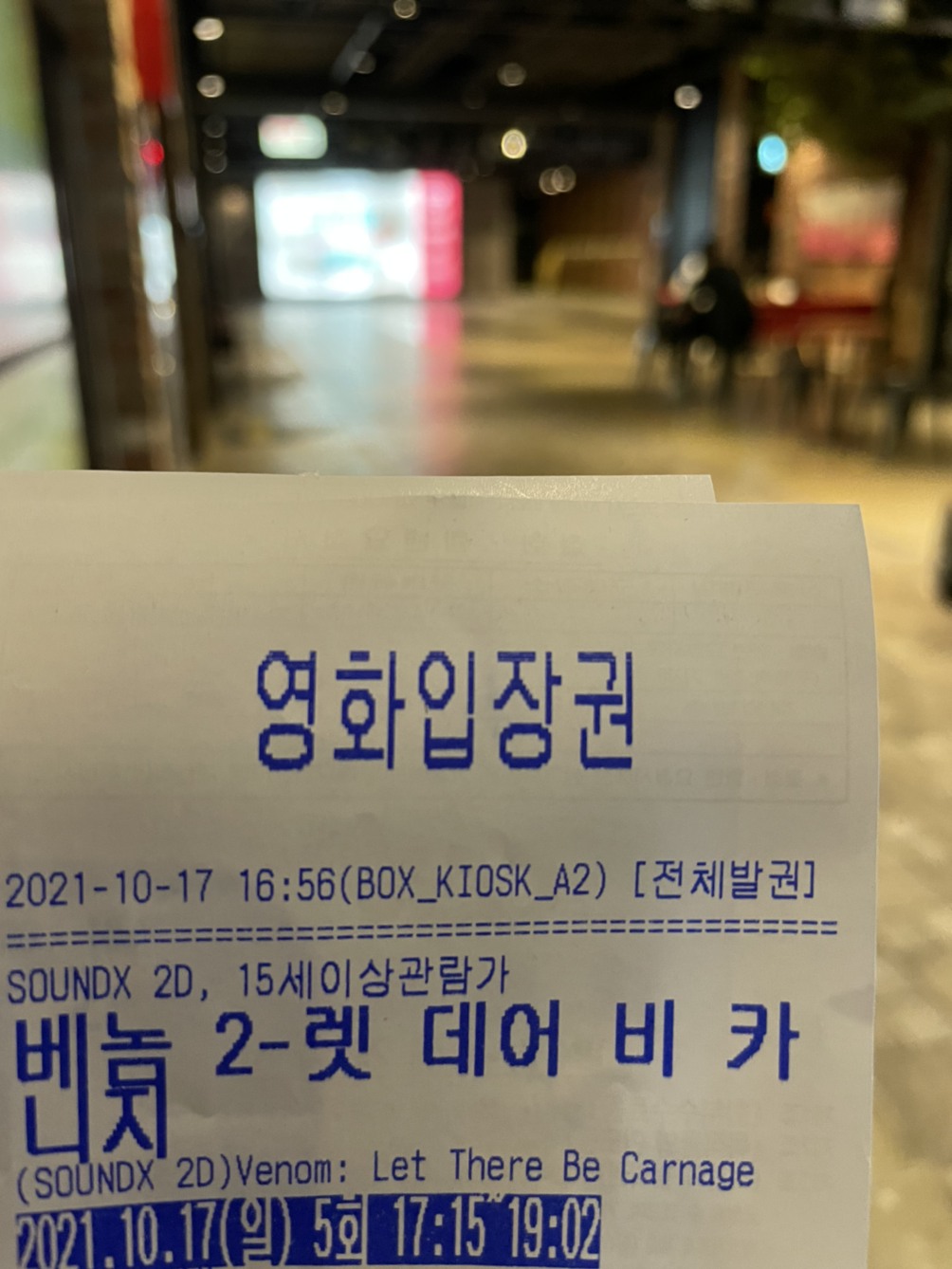 17시 15분에 베놈 영화를 보기로 한 남편과의 데이트를 맞추기 위함도 있고,