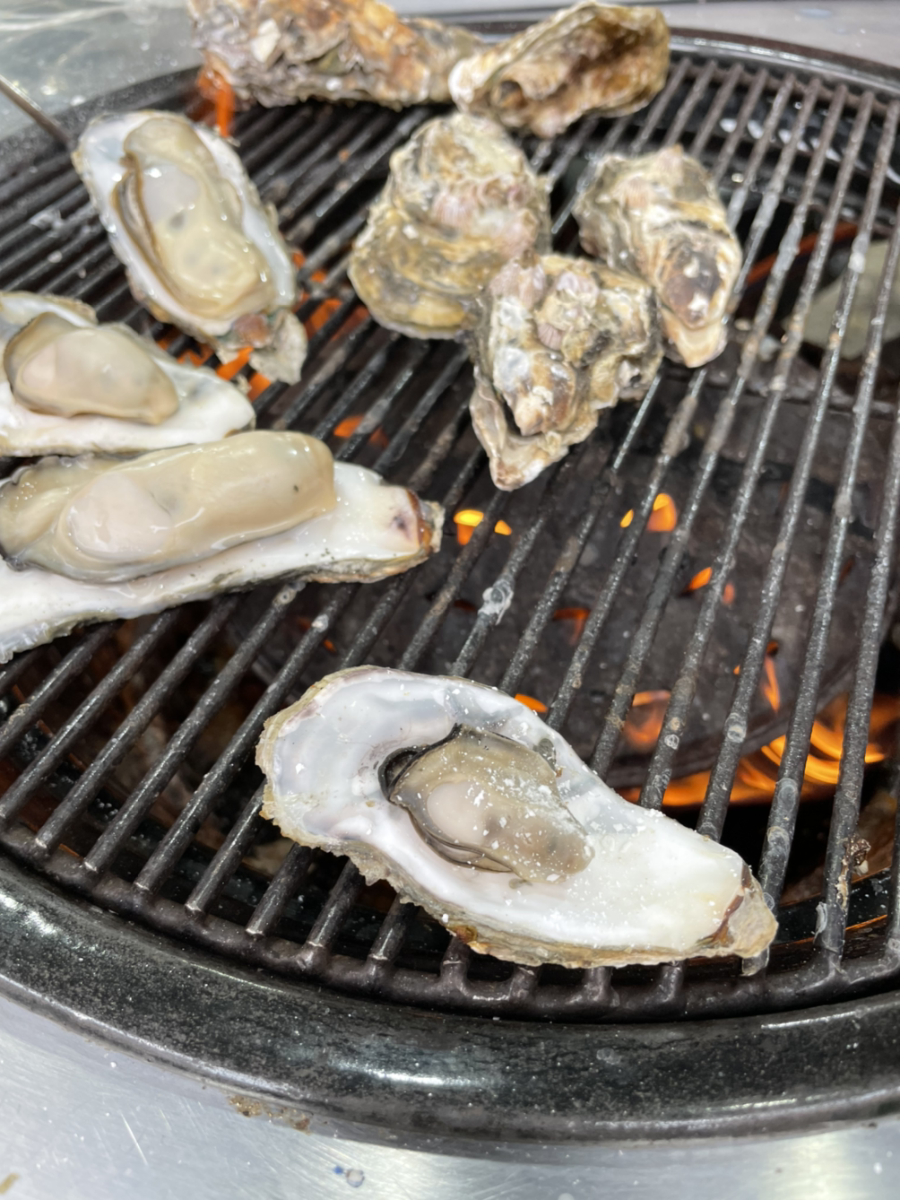 식탐의 여왕 나는 오늘도 이렇게 새롭게 굴구이를 접하였다. 항상 굴찜 또는 석화나 김장에 들어간 굴을 먹다가 40대 들어서서 굴구이를 처음 먹은 이 순간. 또 행복한 기억이 하나 추가된다.