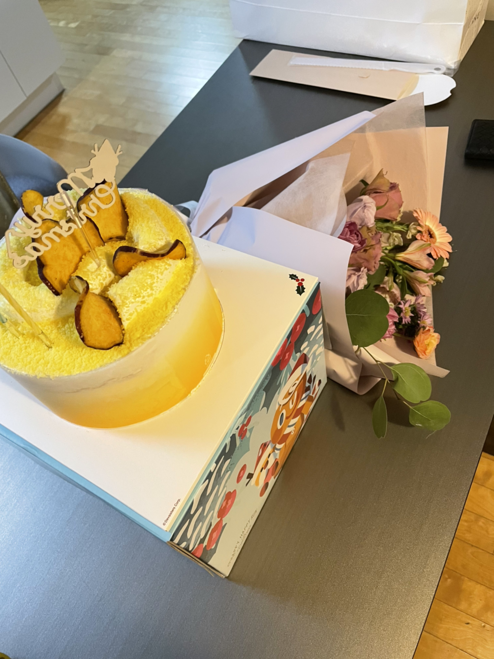 외투와 손도 씻지 않은 상태로 멘붕의 순간이 지나고 정신을 차린 나는 안방에 가서 외투를 벗으려고 문을 여는 순간, 컴컴한 방에서 케이크와 꽃다발을 들고 서있는 남편을 바라보았다. 눈물이 핑 돌았다.