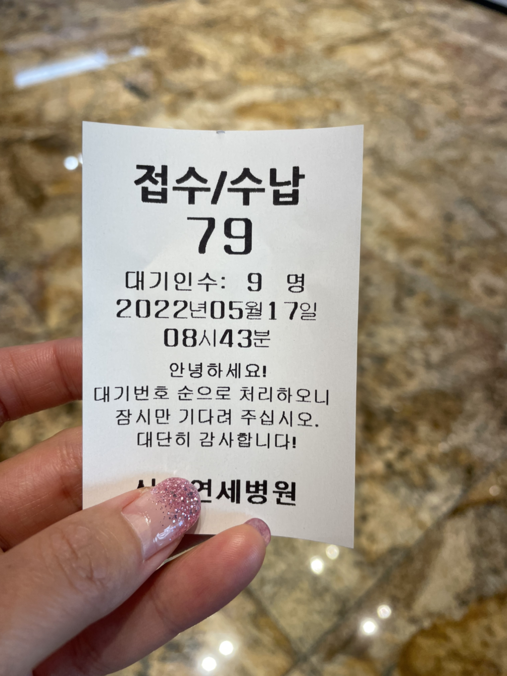 병원에 도착 후, 접수증을 뽑고 대기를 하였다.