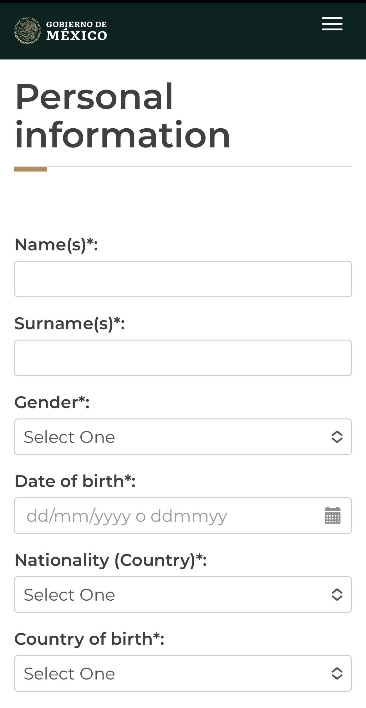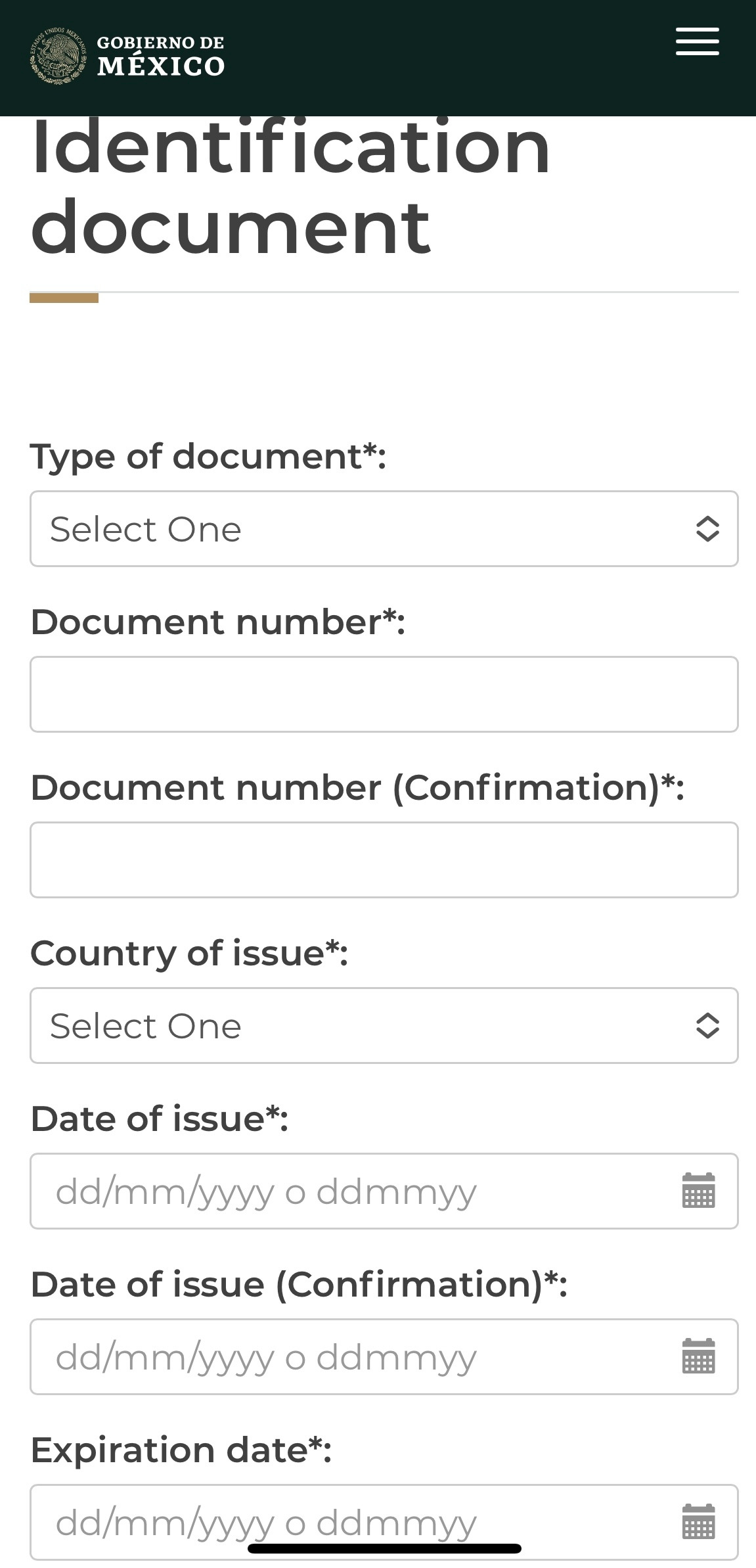 입국 장소를 선택해야 하는데, 칸쿤 국제공항을 가면 Aeropuerto Internacional de Cancun을 선택하면 된다. 입국 형태는 Aereo(항공)으로 이미 고정되어 있다. 항공 입국을 선택하였기 때문에 그 부분은 따로 선택할 필요가 없었다. 그리고 각 항목에 별표가 된 부분은 꼭 작성하고 넘어가야 하며, 각 항목마다 (재확인)이라고 되어있는 부분이 다시 정보를 잘못 기재될지 모르는 순간을 다시 체크해줘서 어렵지 않게 작성할 수 있었다. 개인정보 입력란에 보면 생년월일, 국적(국가), 그리고 생년월일이 되어있는데, 마지막 생년월인은 국가 선택하면 된다. 영어 버전으로 보면 생년월일로 되어있는 항목에 Country of Birth로 되어있다. 한국어 번역이 약간 오류가 된 항목이어서 클릭해서 안에 있는 세부 정보를 보고 선택하면 될 듯하다.