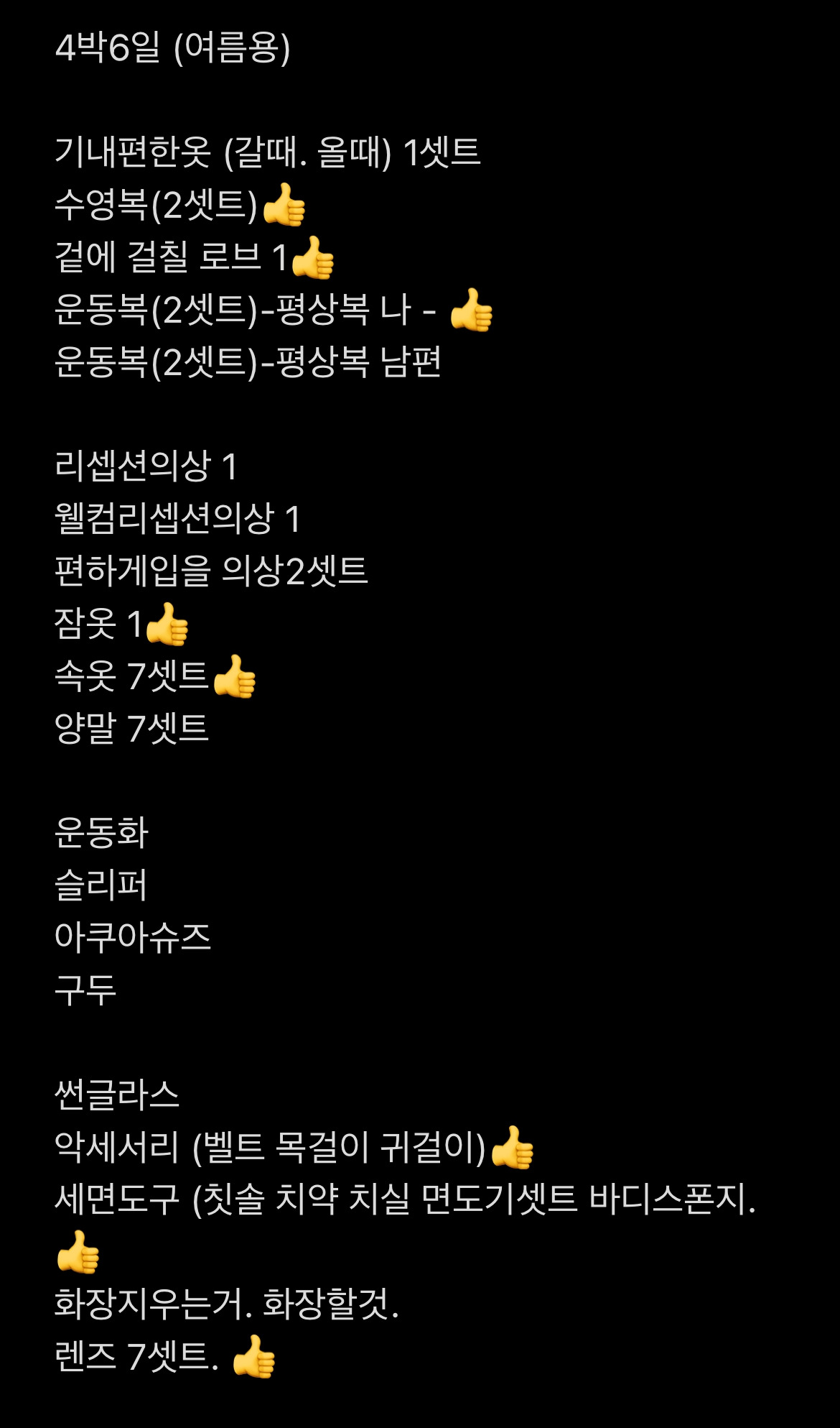 나의 폰에 챙겨할 목록이 정리가 되어 있었고, 하나하나 완성하면 엄지 척을 넣어줬다.