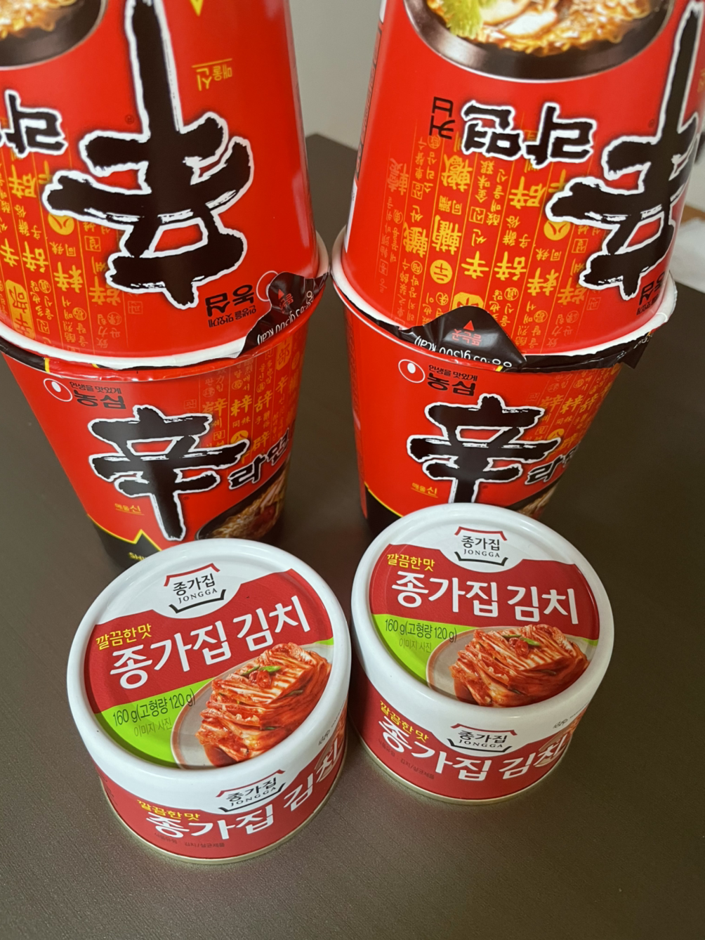 짜파구리는 고기 표시가 되어 있지 않아서 4개나 챙겨갔는데 걸리지 않았다. 캔 김치와 김도 아무런 영향을 받지 않아서 2개씩 챙겨 갔다. 그래서 나름 힐링이 되었다.