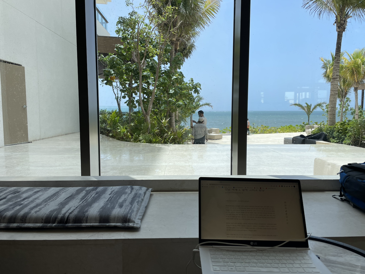 햇살이 가장 강하게 내리쬐는 12시 이후가 너무 힘들어서, 우리는 조금 일찍 나가서 10시부터~ 11시까지 한 시간 정도 수영을 하고 선베드에 누워 바다 바람을 즐기고 더워 지칠 때 실내공간에서 놀았다.