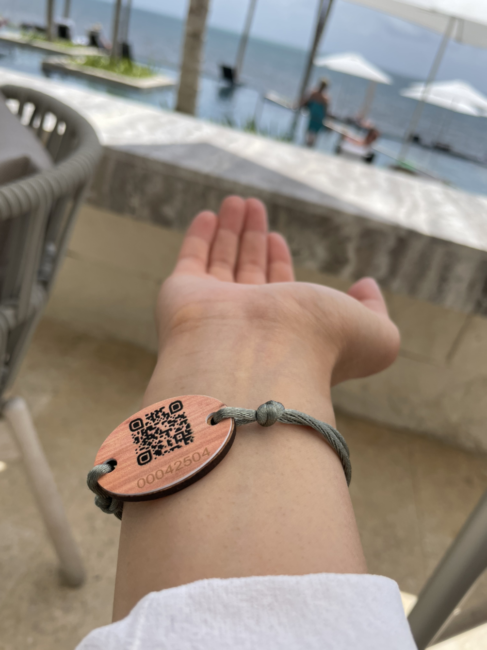 투숙하는 기간 동안 팔찌를 계속 차고 있어야 한다. 팔찌의 중간은 나무 펜던트로 되어 있고, 뒷 면에 QR 코드가 있는데 그 코드를 객실 문에 대어주면 객실이 열린다. 처음에 몰라서 당황하였는데, 짐을 옮겨주는 직원이 알려주어서 쉽게 객실을 들어갈 수 있었다.