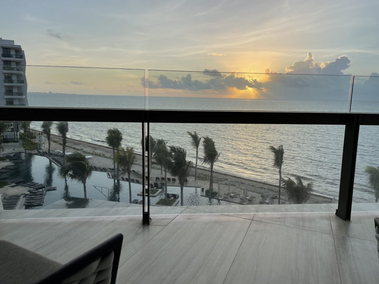 객실을 들어서는 순간 바다가 한눈에 펼쳐졌다. 그리고 테라스가 있어서 바다 구경은 원 없이 했다. 칸쿤의 6월 날씨는 우기라고 하였고, 우리가 투숙한 6월 초 한 주는 비는 딱 한 번 30분 정도 내렸고, 그 외 날씨는 쨍쨍하였다. 습도가 높은 것을 제외하고 객실 에어컨도 너무 시원하였다. 단점은 딱 하나 정말 습도가 너무 높다. 그래서 모든 게 눅눅하다. 미니바가 다 포함이다. 다양한 음료와 주스, 그리고 맥주가 있어서 투숙하는 기간 내내 그 냉장고는 부족한 아이템이 계속 채워졌다.