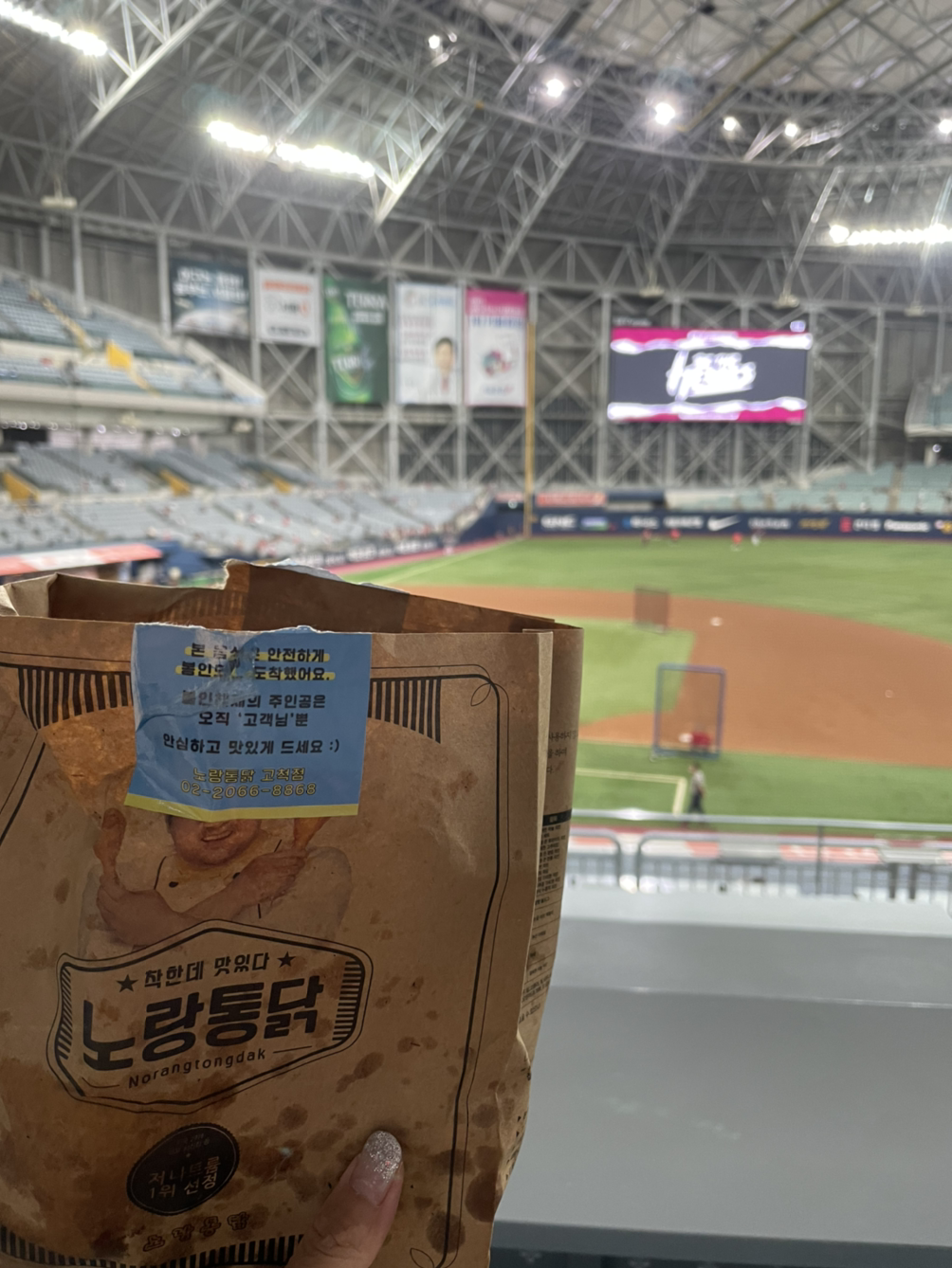 정말 다행은 야구 시작 1시간 전 도착해서 미리 치킨을 다 먹고 치운 상태여서 경기를 보기 편했다.