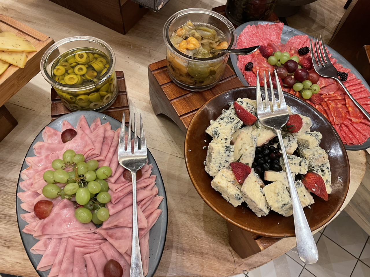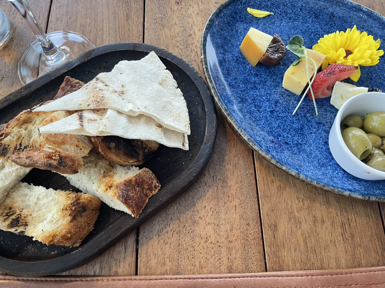 식전 빵과 기본 치즈 플래터와 올리브가 세팅되었다.