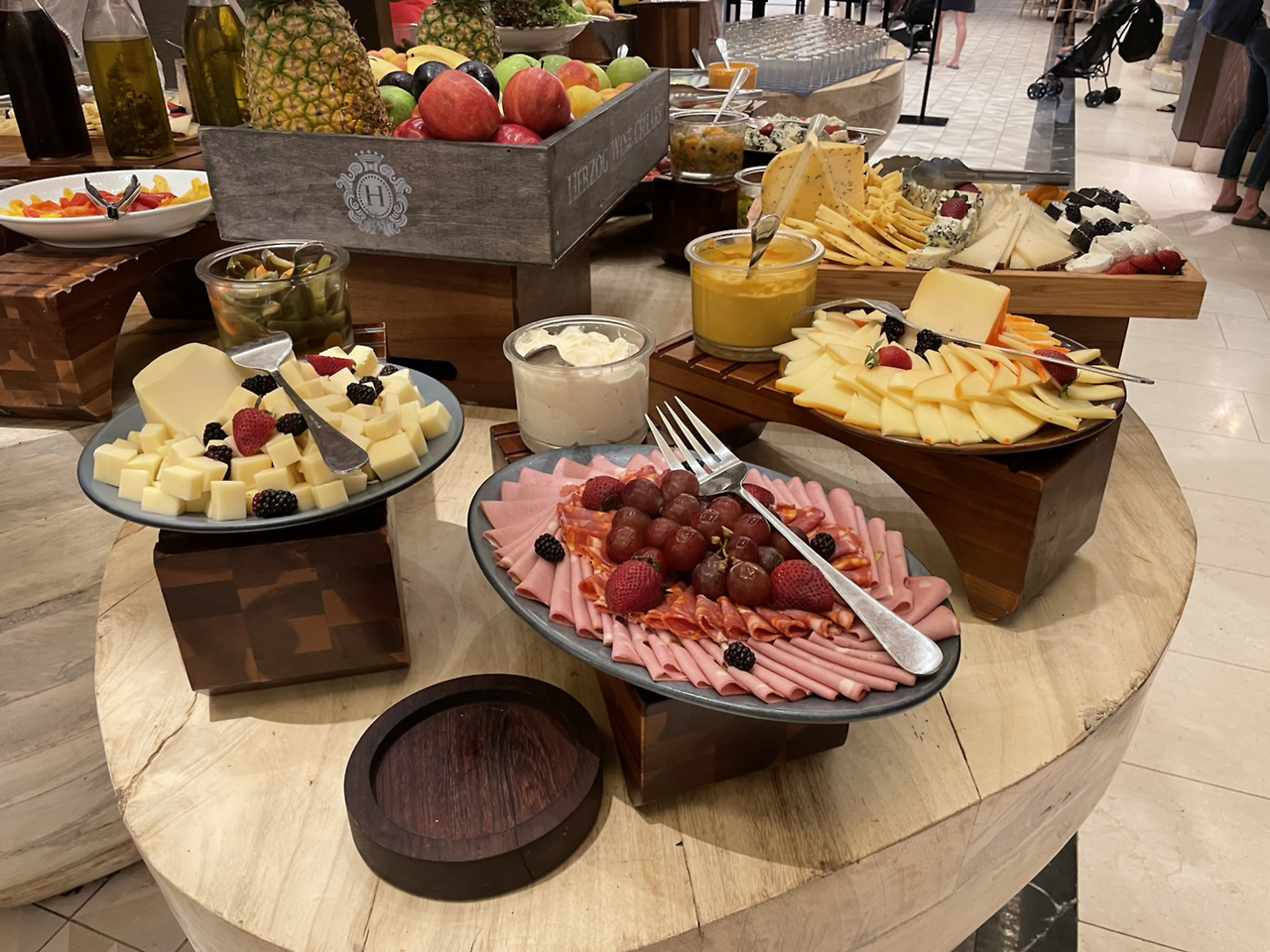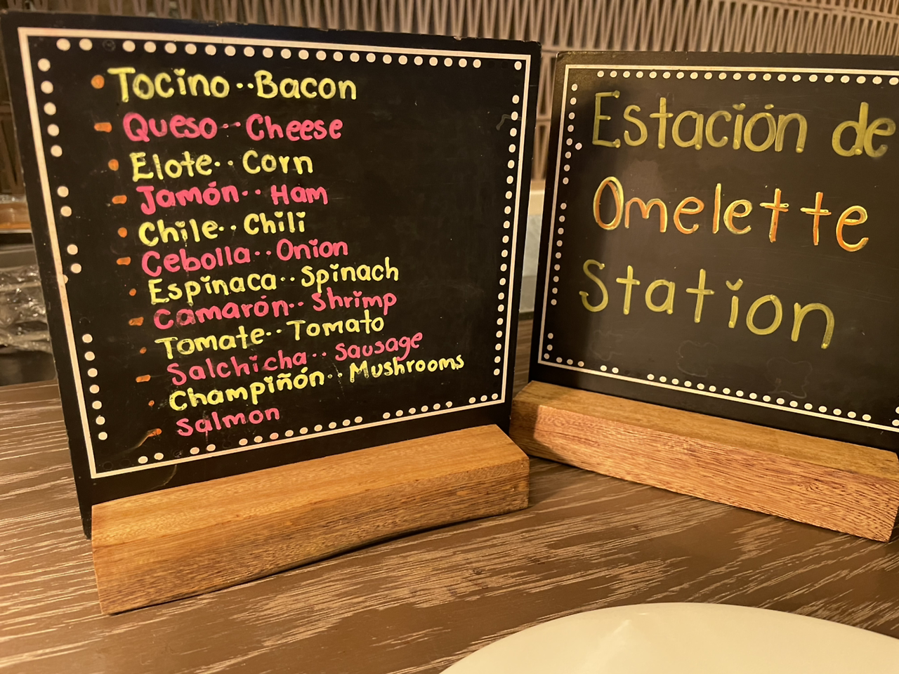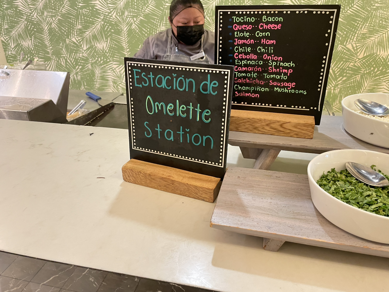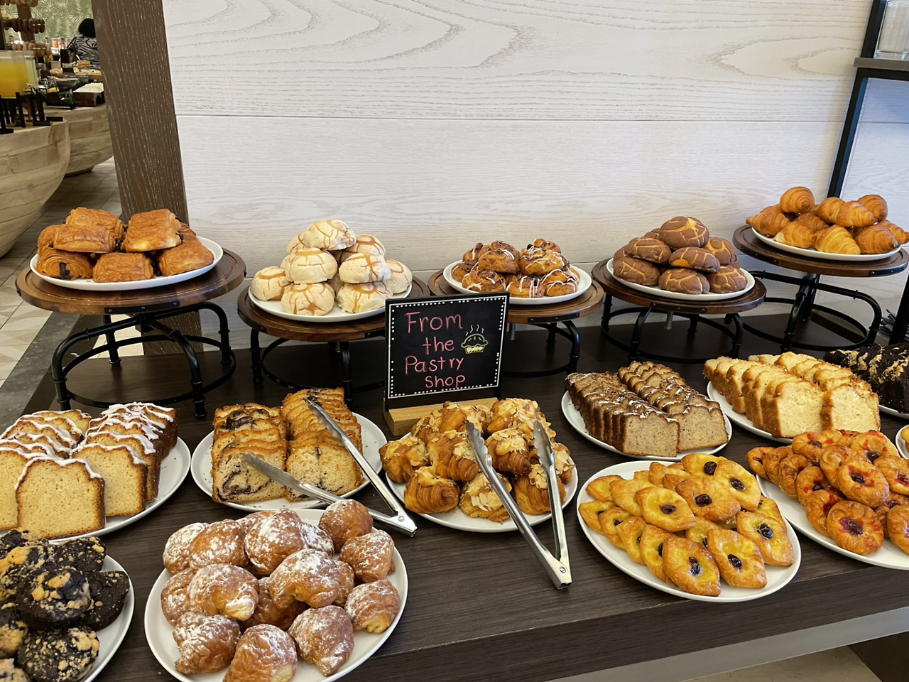 멕시코 지역이니 멕시코 요리가 제일 메인이었다. 다양한 타코요리와 생선찜, 그리고 돼지고기 스테이크, 새우, 계란, 베이컨 소시지 등등 다양한 요리가 있었고, 거기에 디저트와 과일 섹션도 굉장히 큰 편이었다.