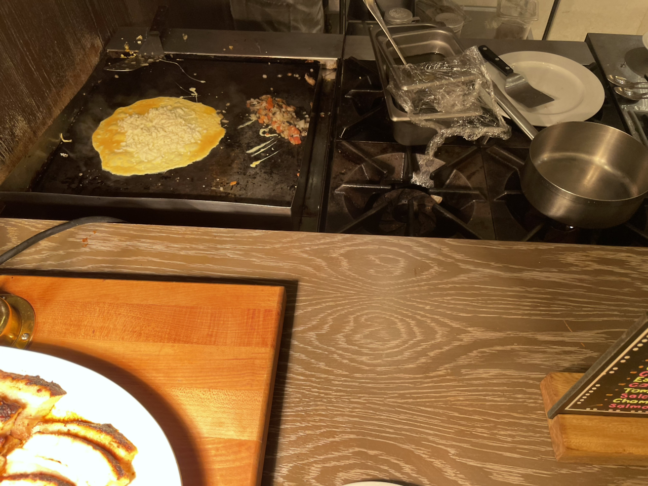 역시 금방 해준 오믈렛에 치즈가 가득 들어서 맛이 너무 좋았다. 그런데 빵은 생각 외로 쫄깃하지만 무맛이었다. 밀가루가 조금 우리나라랑 다른가 하는 생각이 들 정도로 빵은 고소한 풍미는 없었다.