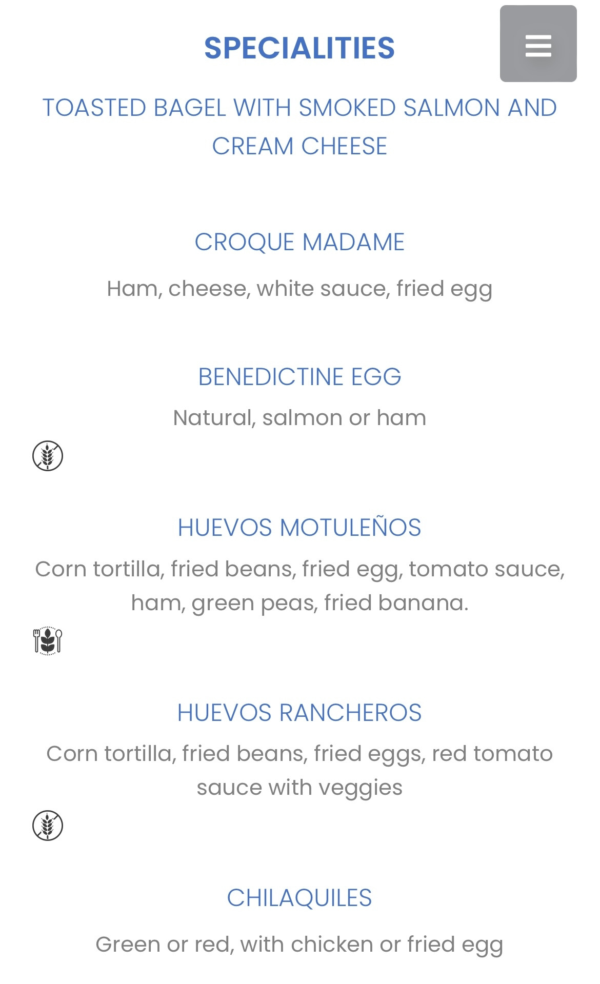 나의 메뉴는 오믈렛, 디저트로 와플을 주문하였고, 남편은 Two Eggs Fried에 프렌치토스트를 주문하였다.