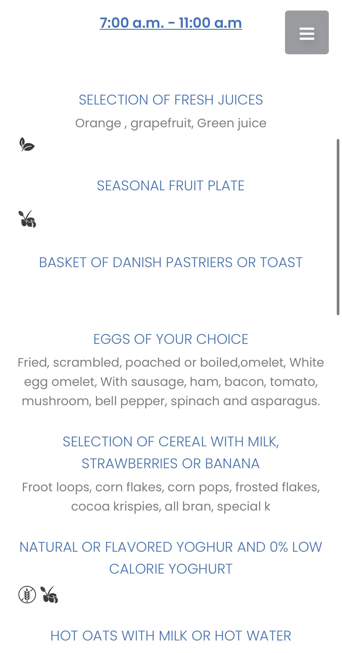 룸서비스는 아침, 점심&저녁, 야식 이렇게 세 종류의 메뉴를 가지고 있으며, 시간대별로 주문할 수 있는 메뉴도 달라진다. 그리고 내가 주문하려고 들어가는 시간대 기준으로 40분 이후의 시간부터 주문이 가능했다.