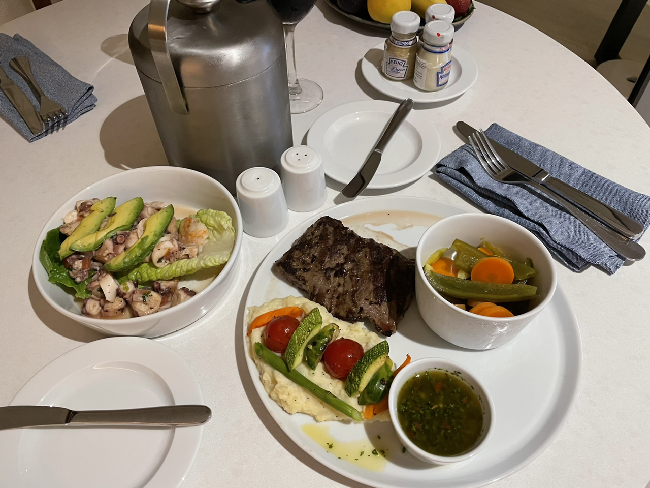 스테이크는 그냥 평범하게 먹을만한 너비아니 같은 느낌~ 저녁에 배고픔을 채워줄 만한 식사였다.