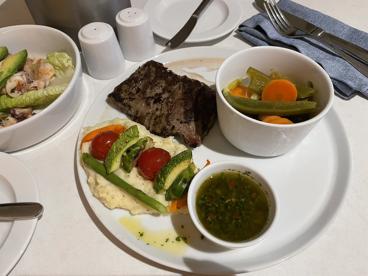 그리고 메인은 스테이크를 주문했다. (가니쉬로 매쉬드 포테이토와 아스파라거스)