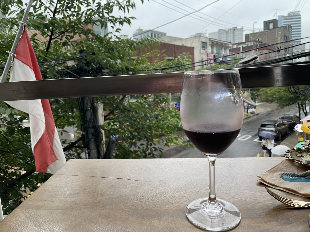 그리고 발리 여행 분위기가 나는 바에 가서 와인 한 잔과 또띠아 칩을 먹었다.