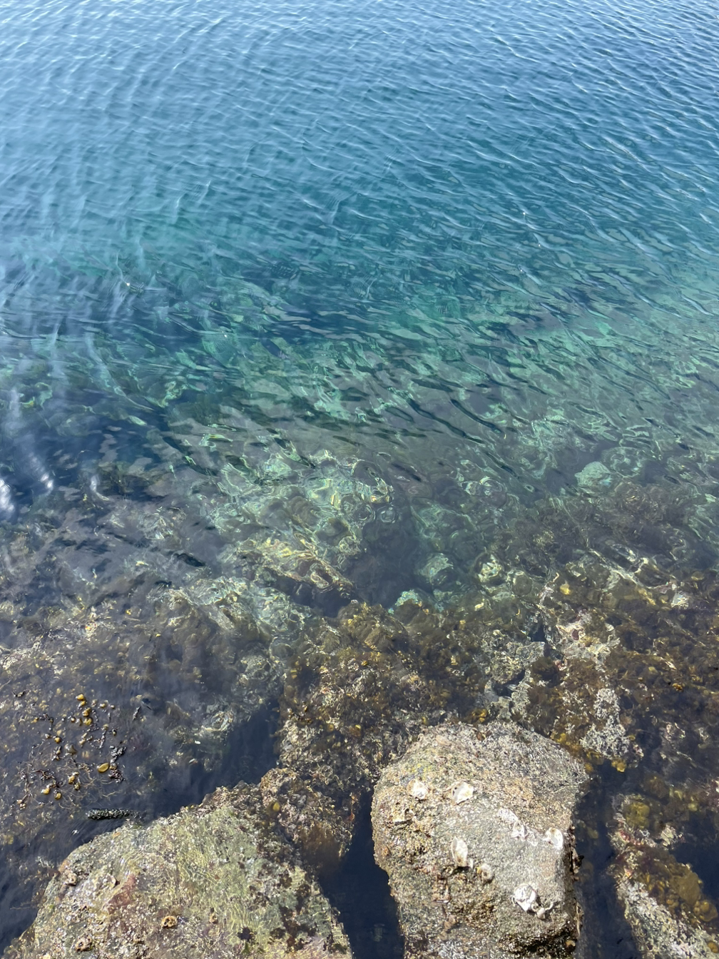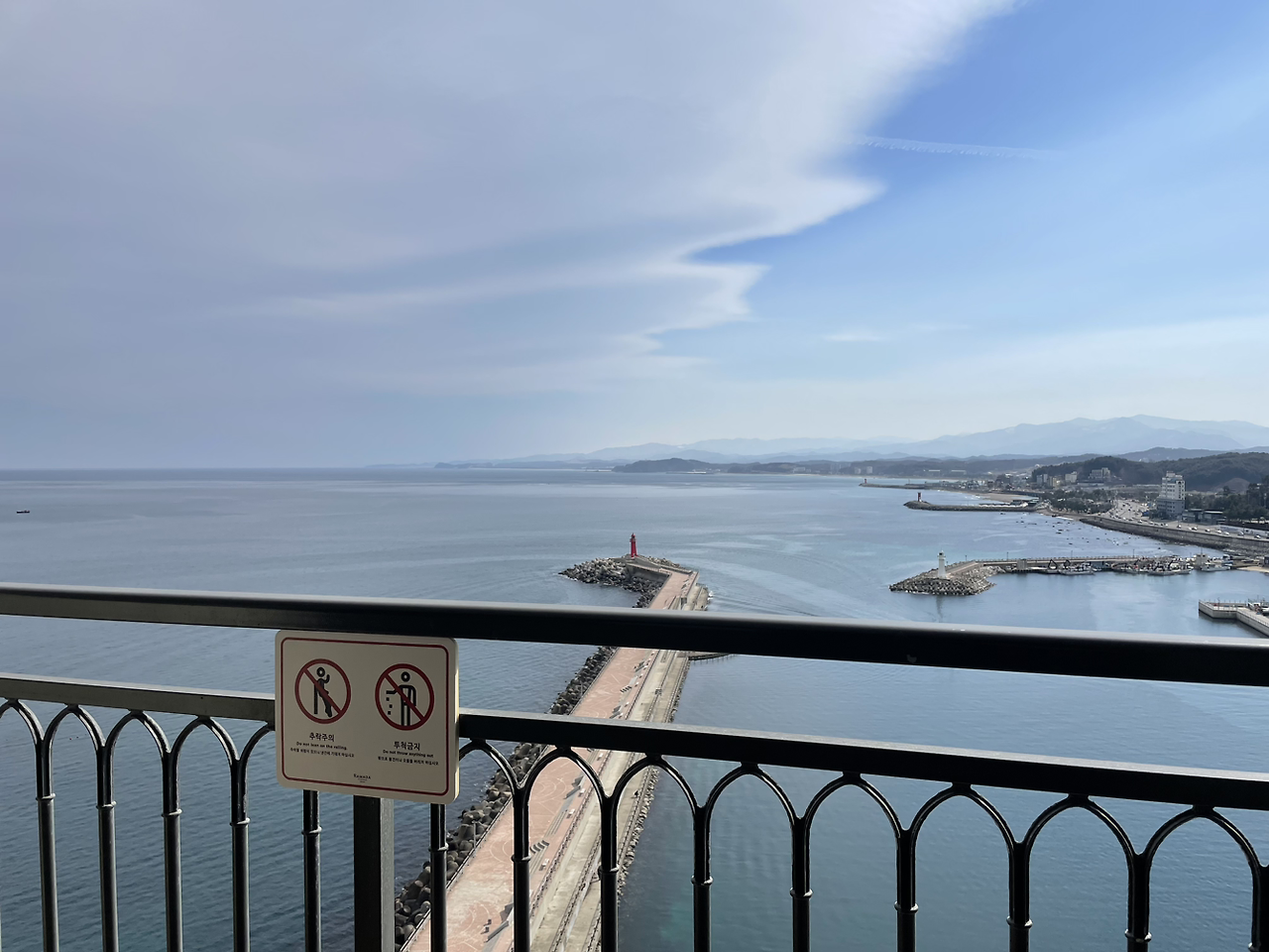호텔 2층에서 바로 나와서 대포항으로 가는 길이 연결되어 있으며 동해 바다의 물은 너무 깨끗하다.