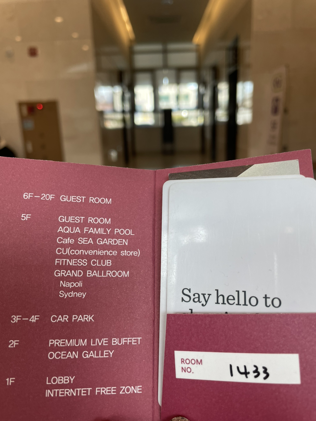 이제 우리의 객실로 이동하는데, 객실 타입은 하버뷰로 예약하였고, 높은 층으로 요청하였다.