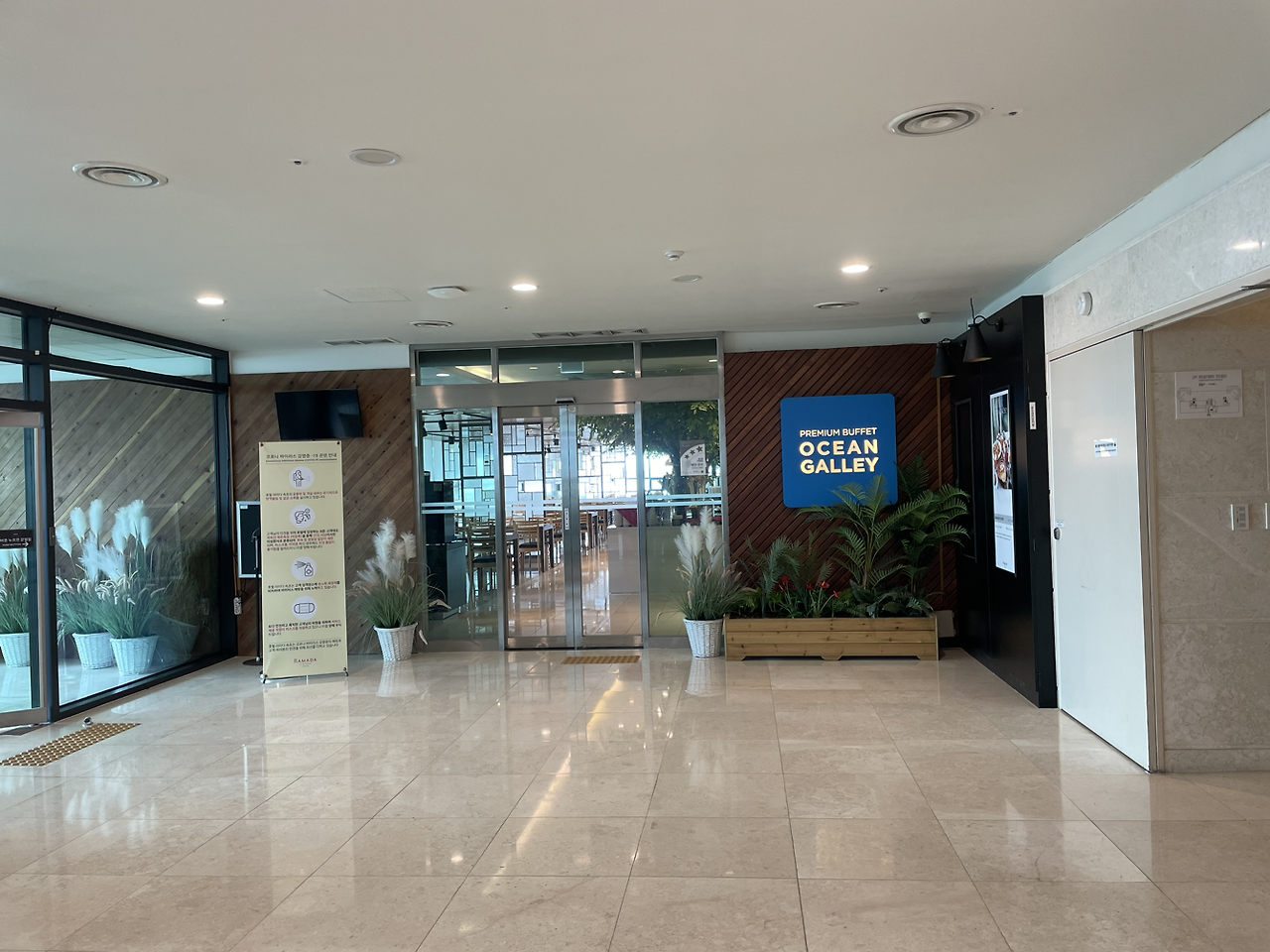 Cafe Sea Garden은 편의점에서 산 음식들을 먹고 있는 분들도 있었고, 안 쪽 카페가 있었는데 주중이라 그런지 오픈하지는 않았다. 거기에서 보는 바다도 멋진데, 객실 뷰가 너무 멋져서 그곳에서 볼 이유가 없었다.