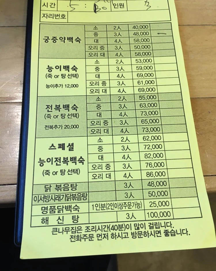 압력 솥을 이용하는 곳이라, 시간이 오래 걸린다.