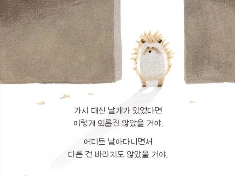 그러다 보면 계속 보고 싶고 조금 더 자주 보고 싶은 사람들이 생겨갈 것입니다. 그렇게 가볍지만 열린 마음으로 시작하는 것이 너라는 고슴도치와 나라는 고슴도치가 어떤 시점, 어떤 장소에서 만나게 하는