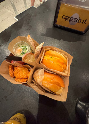 전날 밤 스테이크로 전성기를 되찾은 내 위장에게 미국의 식탁은 결코 자비롭지 않았다. 그 자비 없는 공세는 눈을 뜨자마자 마주한 브런치 식당, 에그슬럿(Eggslut)의 페어팩스(Fairfax)로 고스란히 이어졌다. 푸드트럭의 전설에서 시작해 미국의 아침을 평정한 에그슬럿. 그중에서도 페어팩스는 달걀이 보여줄 수 있는 가장 화려하고 기름진 사치였다.