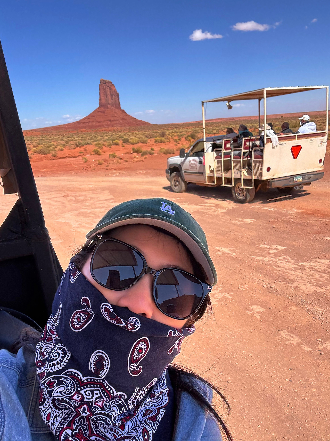사정없이 얼굴을 때리는 흙먼지 덕분에 우리는 스카프를 끌어올려 코와 입을 가렸다. 멋을 부리겠다며 챙겨 온 스카프 두 장이 여기서 신의 한 수가 될 줄이야!