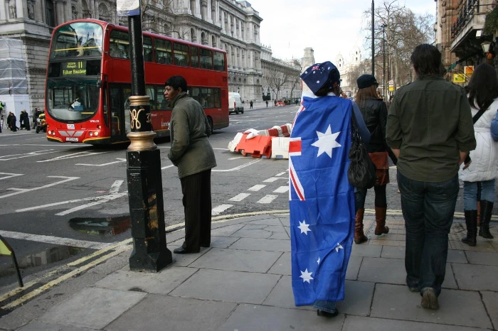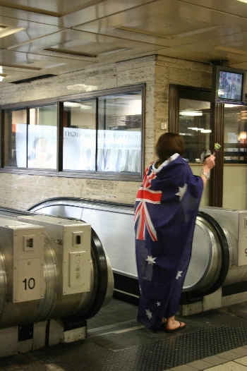 자세히 보니 영국 국기가 아닌 호주 국기다. 영국 연방 국가들은 다 유니언잭 문양을 국기에 포함하니까 두르고 다닐 수 있겠다 싶었지만, 굳이 런던 거리에서 국기 패션 워킹을 하는지 의아했다. 궁금증이 사라지기도 전에 지하철역에서도 호주 국기를 두르고 다니는 또 다른 여성을 발견했다.