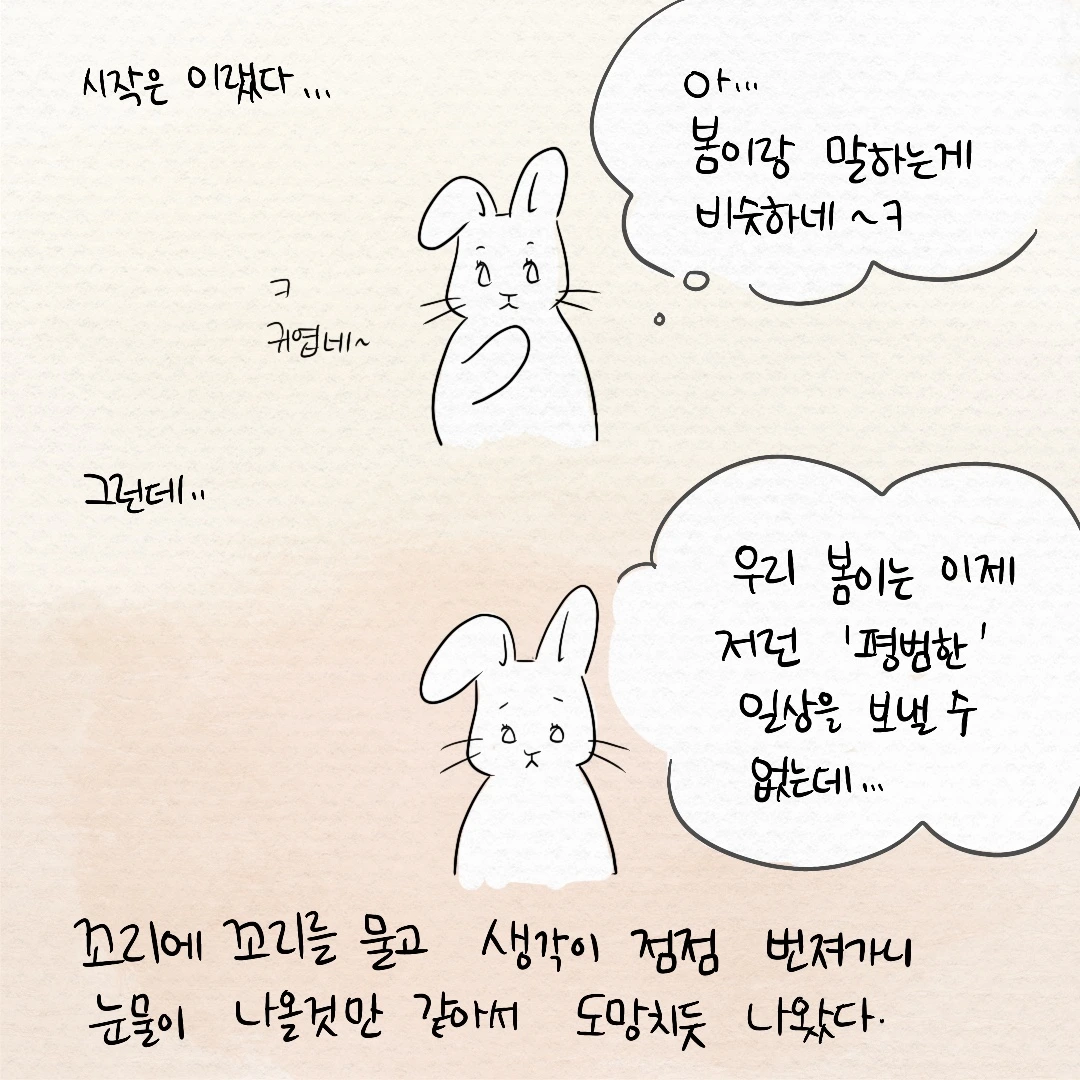 그리고 꽤 울고 나서 생각이 들었다. 어쩌면 그동안 살겠다고 꼭꼭 잘 참아오고 눌러왔던 감정이 작은 사건 하나에 터져버린 건 아닌가 하고 말이다.