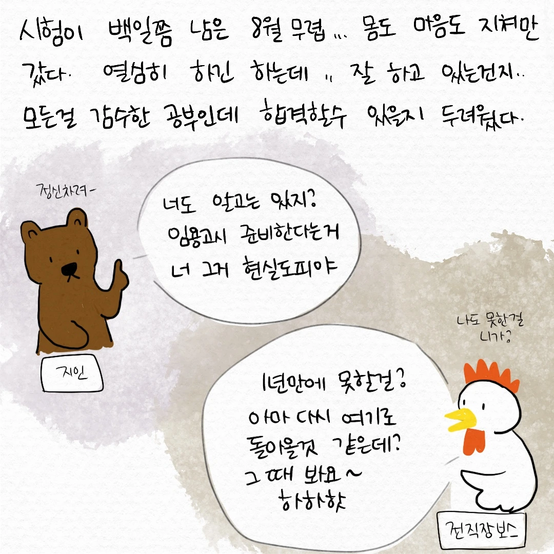 그렇게 반년을 지내오다가, 시험 보기 100일 전쯤인 8월쯤 되니까 불안감이 증폭되었다.