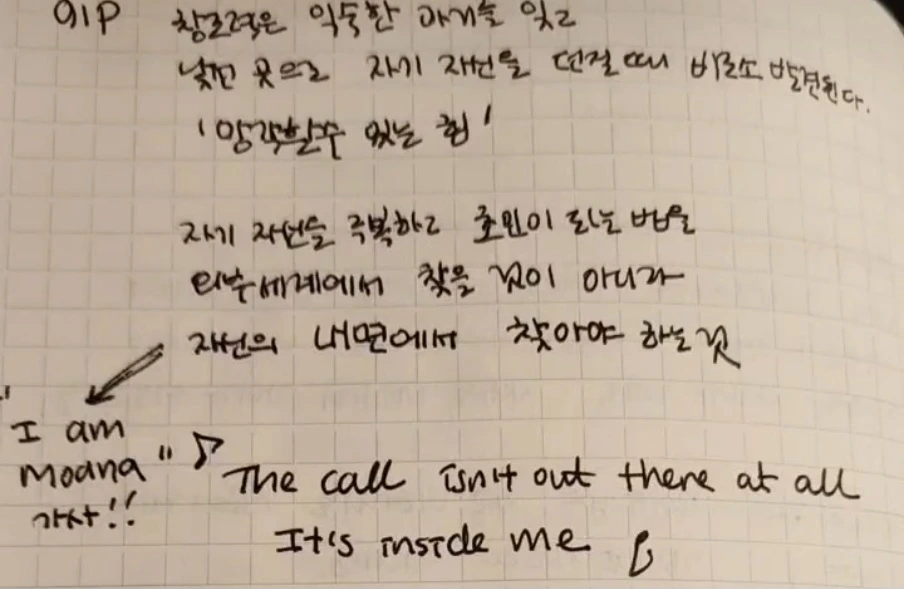 이 모아나 노래와 연결되는 부분을 발견하고 얼마나 기뻤던지