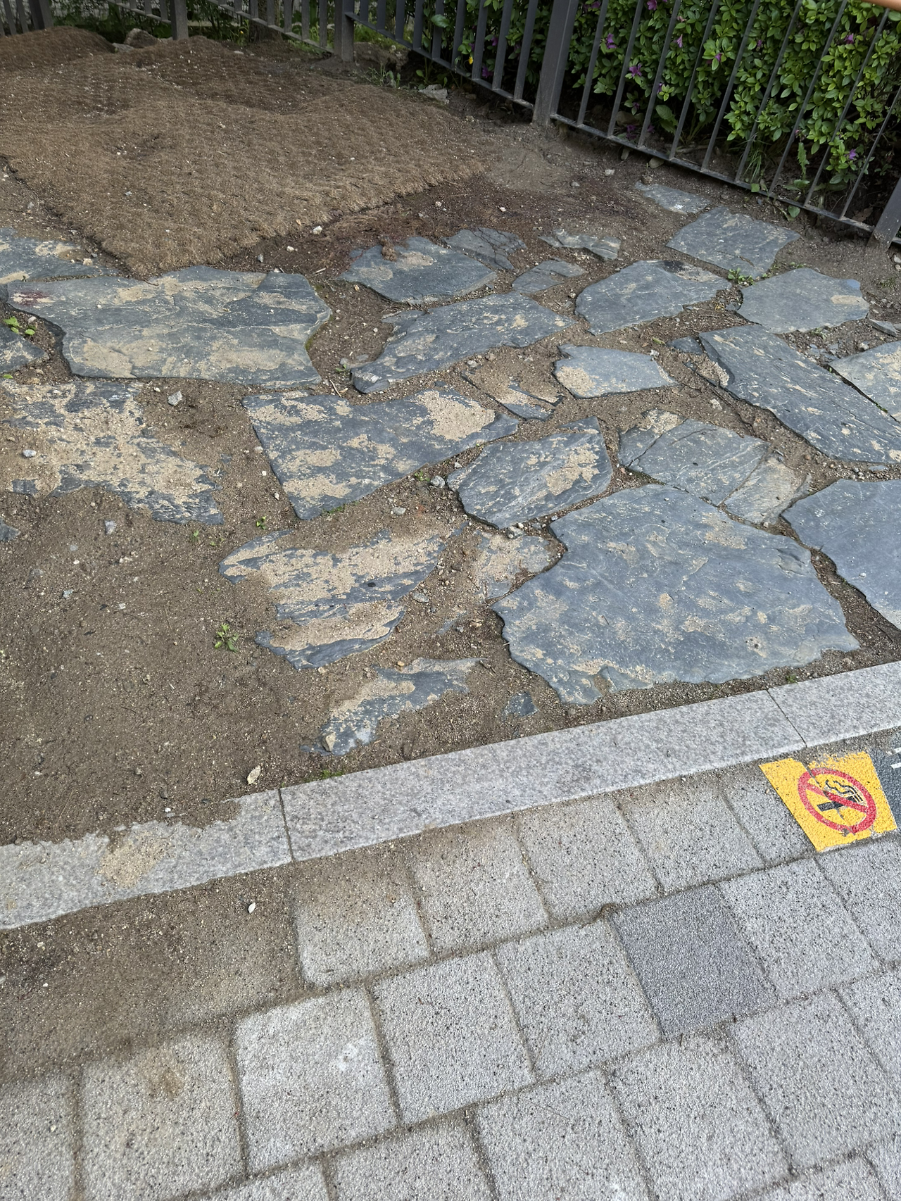 자갈돌로 조성해놓은 산책길이었는데 정말 거짓말처럼 중간에 뚝 끊겨있었다. 예산때문인지 계획구역인지 어쩐지 칼로 자른것처럼 뚝.