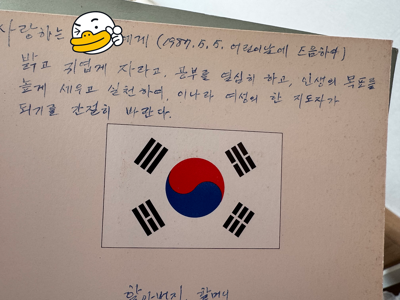 “봄이야, 엄마 할아버지가 엄마한테 밝고 귀엽게 자라래 ㅎㅎ”“