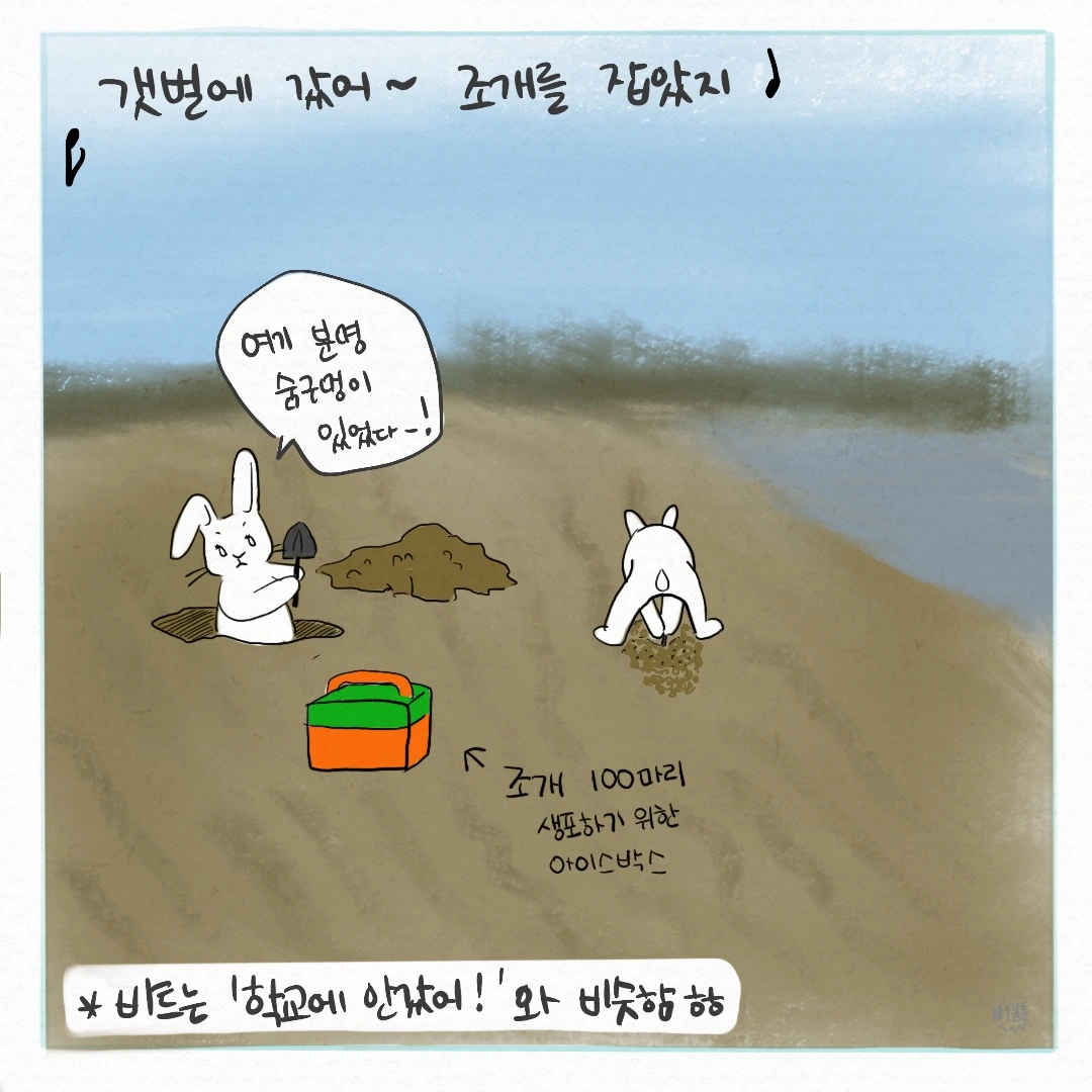 아이와 함께 돌아오는 길에 차에서 들었던, “학교를 안갔어”비트와 비슷하게 개사해서 불렀습니다..ㅎ
