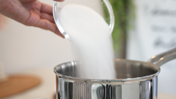 냄비에 설탕 2컵, 소금 4큰술, 피클링 스파이스 3큰술 넣어주시고,