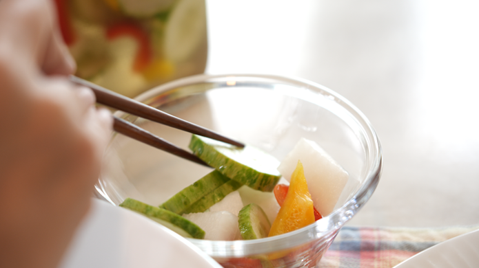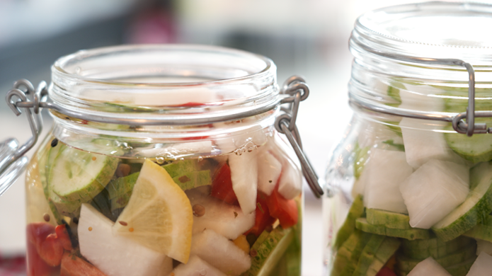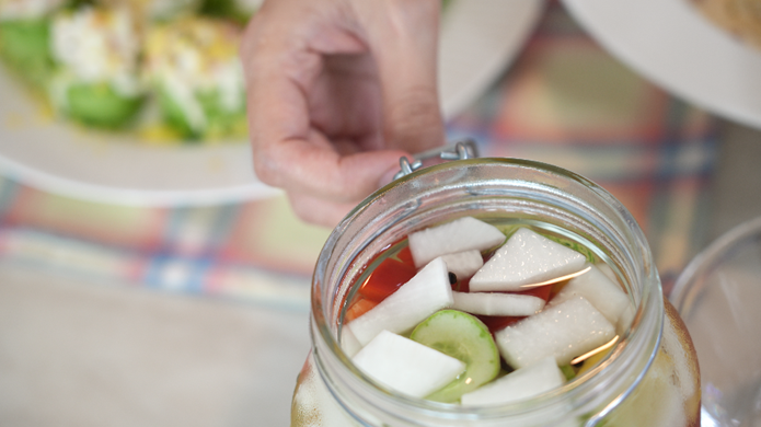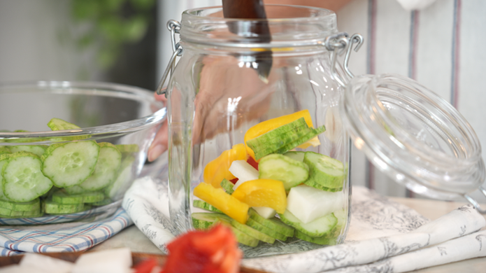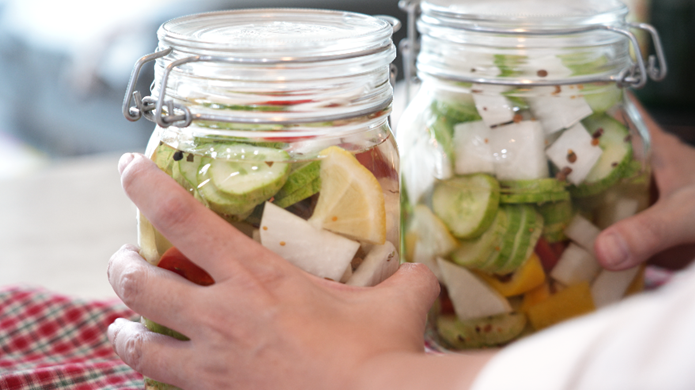 과일청이나 오이피클 같이 오래 담아둬야 하는 식품은 꼭 유리병에 보관하고, 그 병은 열탕소독을 해야 해요.