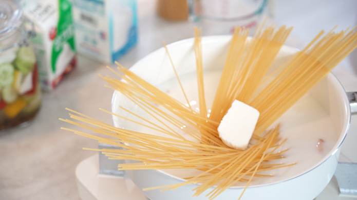 편스토랑 류수영 레시피대로 제가 좋아하는 원팬 크림 스파게티 준비했어요.