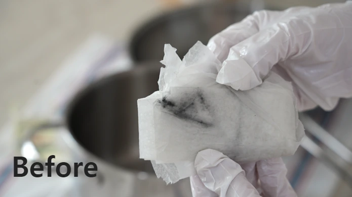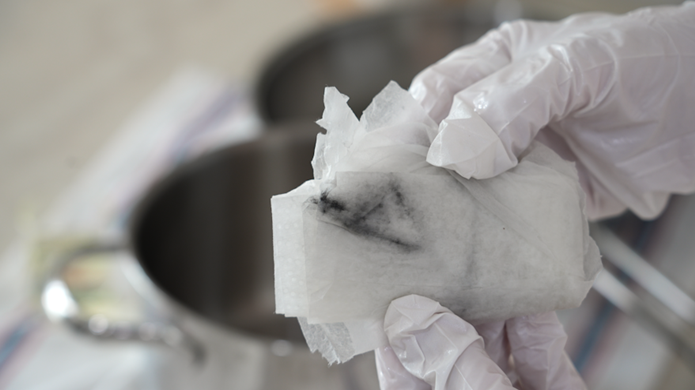 특히 연마제는 냄비 가장자리, 손잡이 이음새, 뚜껑 틈 사이에서 많이 묻어 나와요.