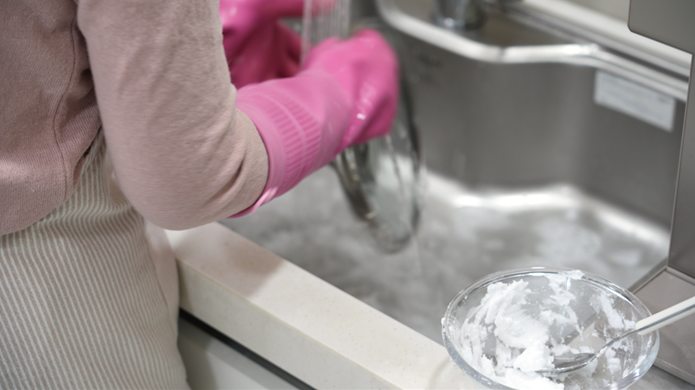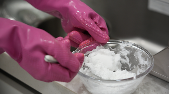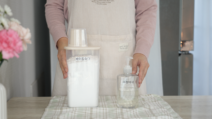 '퐁소겔'은 주방세제(퐁퐁)와 베이킹소다를 섞어서 만드는 것인데, 꾸덕꾸덕한 그릭 요거트 질감처럼 만들어 주시면 돼요.