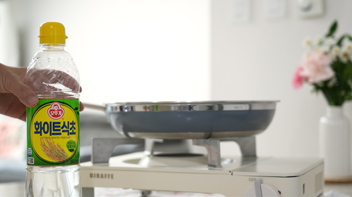 스테인레스 연마제 제거 마지막 단계는 바로 식초와 물을 1:9 비율로 섞은 식초물에 끓여주는 거예요.