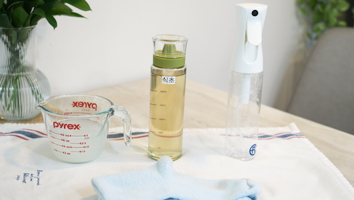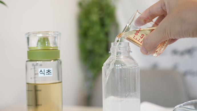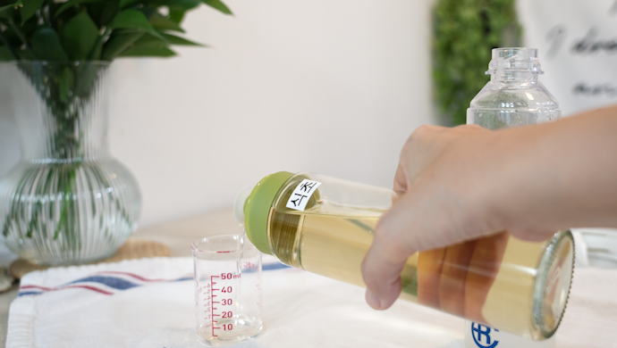 쌀뜨물과 식초를 섞는 거예요.