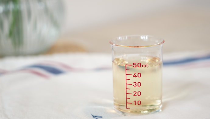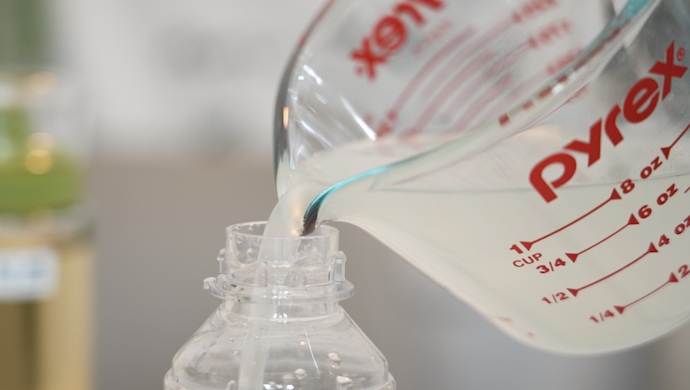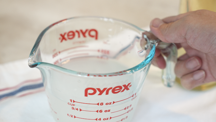 쌀뜨물 200ml와 식초 50ml, 이렇게 8:2 비율로 섞어서 만들어요. (너무 쉽죠?)