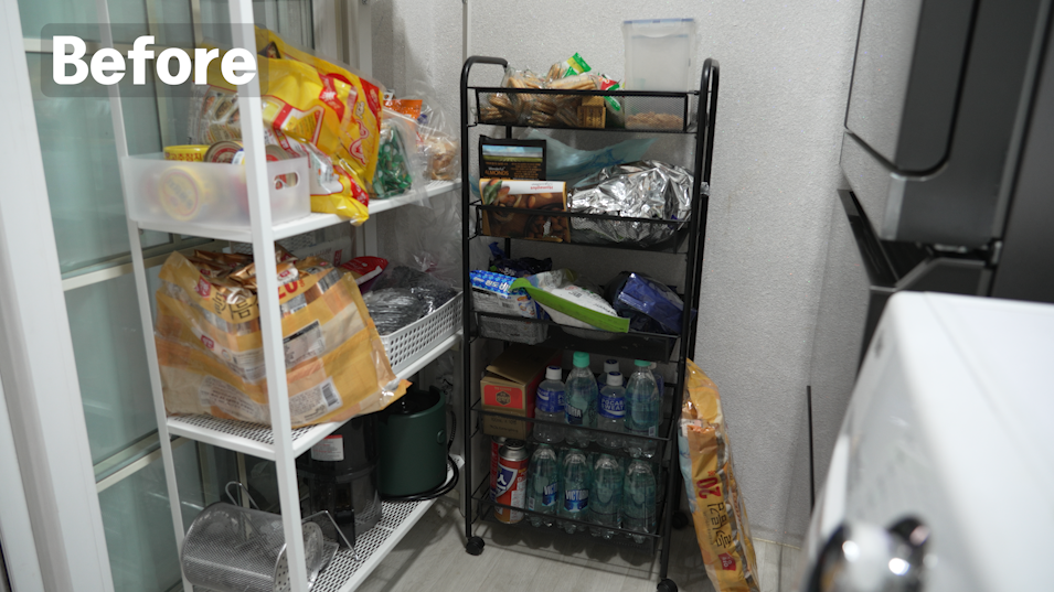 다이소 정리꿀템과 이케아 선반으로 팬트리 만들기