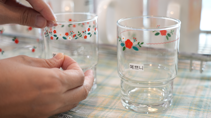 2. 아이들의 컵 애칭을 라벨스티커로 붙여주세요!