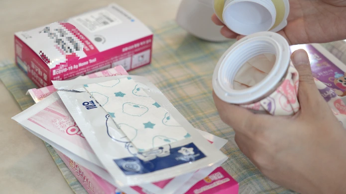 비누 만들기, 아이들 물건 라벨스티커 붙이기, 소독용 에탄올 청소