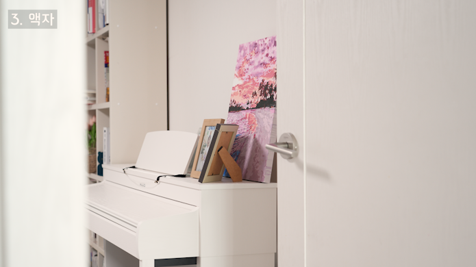 차마 버리면 안 될 것 같은 아이들 액자와 아이들이 만든 미술품들,